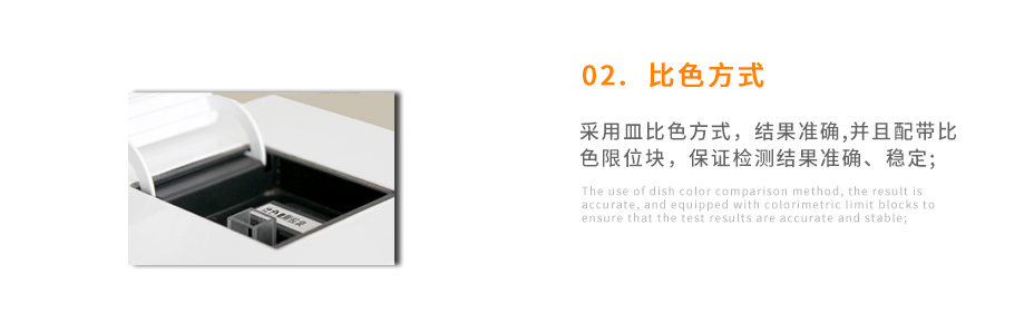 采用皿比色方式,結(jié)果準(zhǔn)確,并且配帶比 色限位塊,保證檢測結(jié)果準(zhǔn)確、穩(wěn)定;
