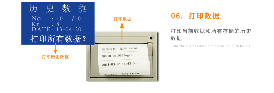可打印當(dāng)前數(shù)據(jù)及所有存儲的歷史數(shù)據(jù);