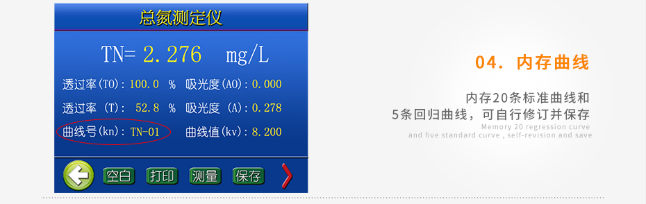儀器自備校準(zhǔn)功能,可根據(jù)標(biāo)準(zhǔn)樣品計(jì)算并存儲(chǔ)曲線,無需手動(dòng)制作曲線;
