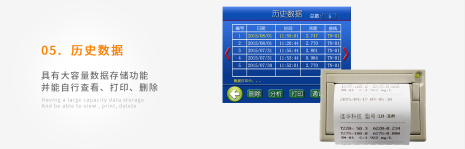 可打印當(dāng)前數(shù)據(jù)及存儲(chǔ)的歷史數(shù)據(jù);