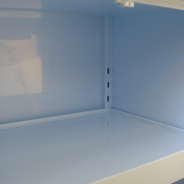 1.柜體采用抗強(qiáng)酸堿化學(xué)藥品、耐沖擊瓷白色PP板,厚度8-12mm。